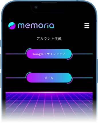 メモリアの「新規登録」より アカウントの作成を行います。